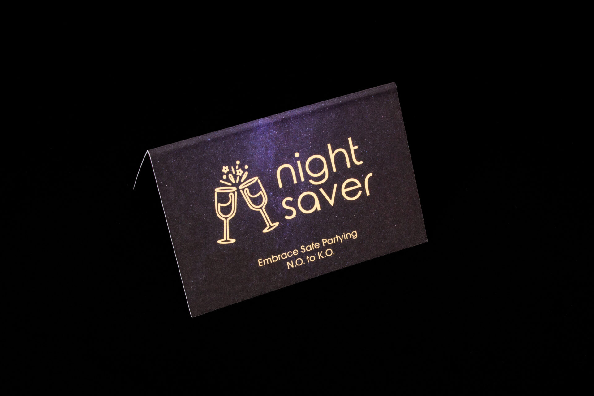 - Wird ein Tropfen eines Getränks MIT GHB oder GBL darin aufgebracht, so warnt der Night-Saver, weil die Farbe ins Dunkle umschlägt – in dem Fall von gelb zu violett.